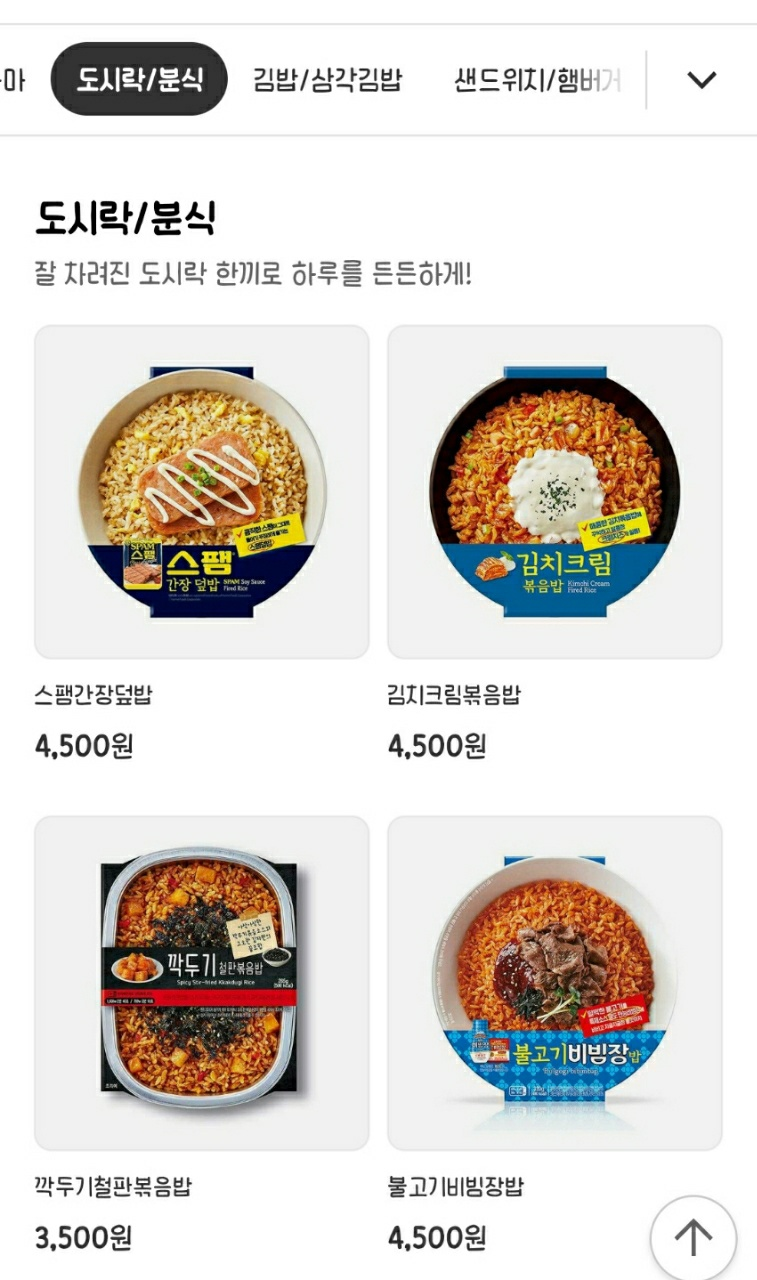 그러면 이렇게 여러 브랜드 지점들이 뜨는 걸 볼 수가 있는데요. 역시나 다양한 상품들이 존재하며 즉석식품과 냉장, 생필품, 간식거리들 주문할 수 있습니다. 굉장히 쉽죠?